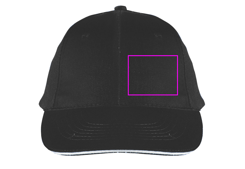 Sportlich und trendy! 6-Panel Sandwich-Baseball-Cap aus schwerer gebürsteter Baumwolle mit matt-silbernem Metall-Druckknopfverschluss. Das Sandwich-Cap hat einen weißen Streifen in der Mitte des Schirms. Dieses Cap ist sehr trendy und aus hochwertiger schwerer Baumwolle gefertigt. Wir sticken Ihr Logo auf die Vorderseite. Der Preis für die Stickerei beträgt pro 1.000 Stiche. Bei einer Standardstickerei sind etwa 8.000 Stiche erforderlich.