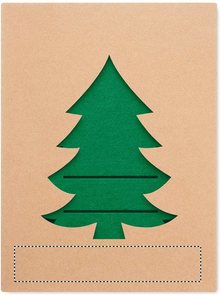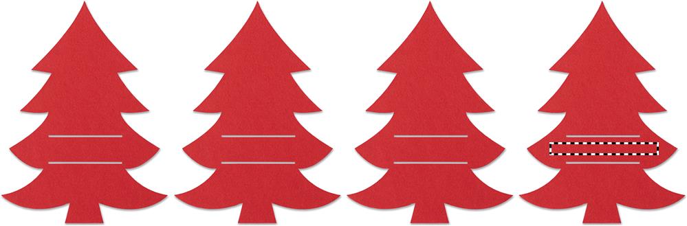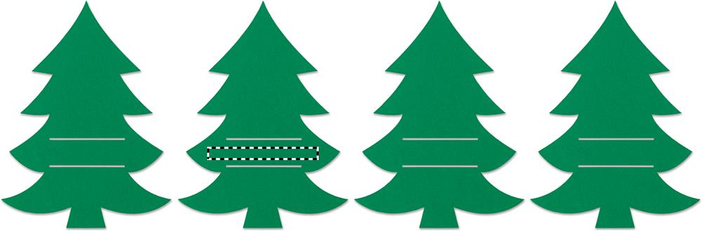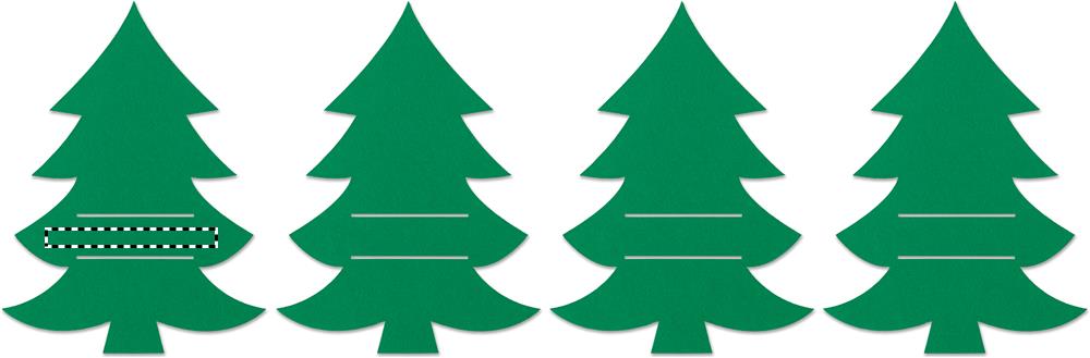 Set mit 4 Besteckhaltern aus RPET-Filz in Form eines Tannenbaums. Lieferung in einer Schachtel aus Kraftpapier.