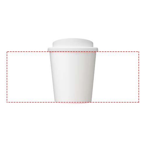 Doppelwandiger Isolierbecher mit Drehverschluss und einem vollfarbigen Wraparound-Design. Hergestellt aus insgesamt 65 % recyceltem Material (recycelter Becher und schwarze Innenschicht) und mit einem Standard-Plastikdeckel. Der Becher ist vollständig recycelbar, spülmaschinenfest und mikrowellengeeignet. Fassungsvermögen: 250 ml. BPA frei. Verpackt in einem kompostierbaren Betuel. Hergestellt in UK.