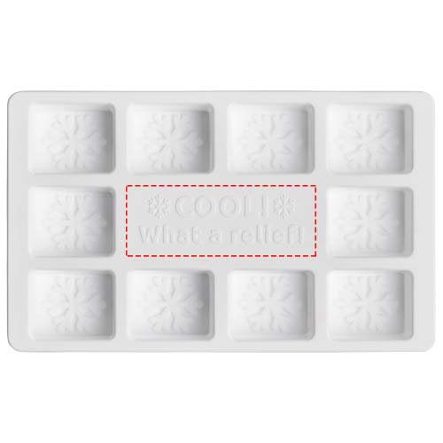 Dieser Eiswürfelbehälter bietet eine neuartige Möglichkeit, Ihr Logo oder Ihre Botschaft auf einem sehr nützlichen Produkt zu präsentieren. Ihre Botschaft kann im zentralen Bereich und/oder am Boden jeder einzelnen Würfelform durch Reliefprägung angebracht werden, um eine fühlbare Oberfläche zu schaffen.