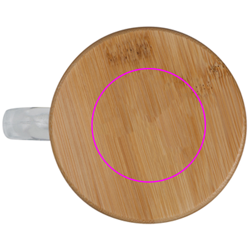 Doppelwandiger Glasbecher mit 350ml Fassungsvermögen und Bambusdeckel, auf dem Ihr Logo eingraviert wird.