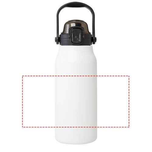 Diese große RCS-zertifizierte Flasche aus recyceltem Edelstahl versorgt Sie stilvoll den ganzen Tag über mit Flüssigkeit. Die Kupfer-Vakuumisolierung hält Getränke mehrere Stunden lang heiß oder kalt, und mit dem klappbaren Griff lässt sie sich leicht transportieren. Die Flasche ist auslaufsicher und lässt sich per Knopfdruck leicht öffnen. Das Fassungsvermögen beträgt 1600 ml. Verpackt in einer Geschenkbox aus Recyclingkarton.