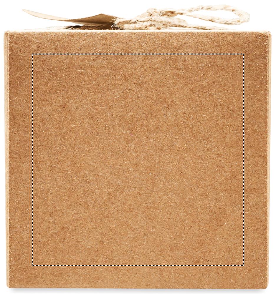 Kerzenhalter aus Glas (120 g) mit Tannen-Dekor. Lieferung in einem Display-Karton mit Jutekordel und Geschenkanhänger aus Kraftpapier. Inkl. 1 Kerze.