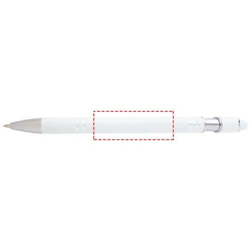 Der Kish Kugelschreiber in Silber hat einen Schaft aus recyceltem Aluminium und einen Stylus aus Silikon. Recyceltes Aluminium reduziert die Menge an Deponiemüll, schont die natürlichen Ressourcen und reduziert die Treibhausgasemissionen. Tintenfarbe: Blau. Schreiblänge: 800 Meter. Schreibspitze: 1 mm.
