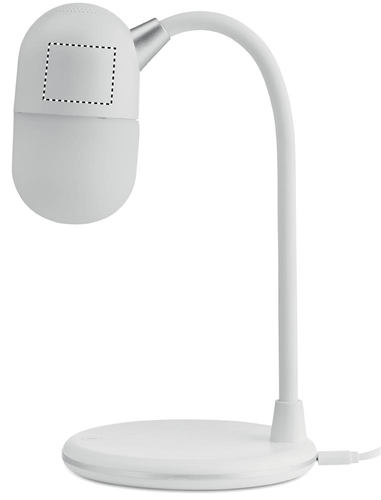 LED Lampe mit induktiver Ladestation und 4.2 wireless-Lautsprecher. 3 Helligkeitsstufen: Tageslicht, Kaltlicht und natürliches Licht. Ausgangsleistung: DC5V/1A (5W). Kompatibel mit den neuesten Android Smartphones, iPhone® 8, 8S und X und höher.