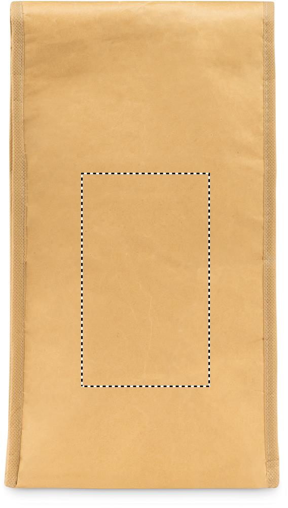 Lunchbag aus Kraftpapier mit Fronttasche. Füllmenge: 3l. Klettverschluss. Isoliermaterial: PE-Schaumstoffschicht.