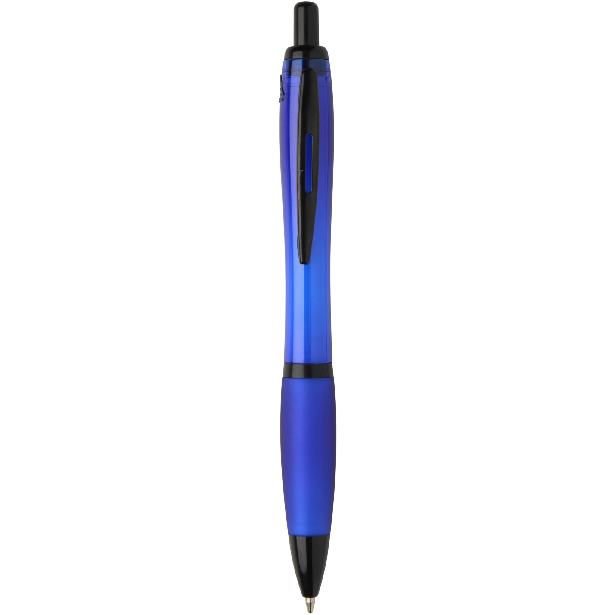 Der Nash Kugelschreiber in der Black Edition hat ein stilvolles, geschwungenes Design mit schwarzen Akzenten und hergestellt aus RCS-zertifiziertem recyceltem Kunststoff zur Reduzierung von Neumaterialien. Dank des schnellen Klickmechanismus ist der Kugelschreiber sofort einsatzbereit. Der weiche Griff verringert die Belastung beim Schreiben. Tintenfarbe: Schwarz. Schreiblänge: 1000 Meter. Spitzengröße: 1,0 mm.