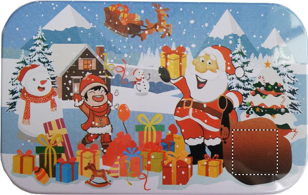 Puzzle mit weihnachtlichem Motiv. 60 Puzzleteile aus Holz. Verpackt in einer Blechdose.