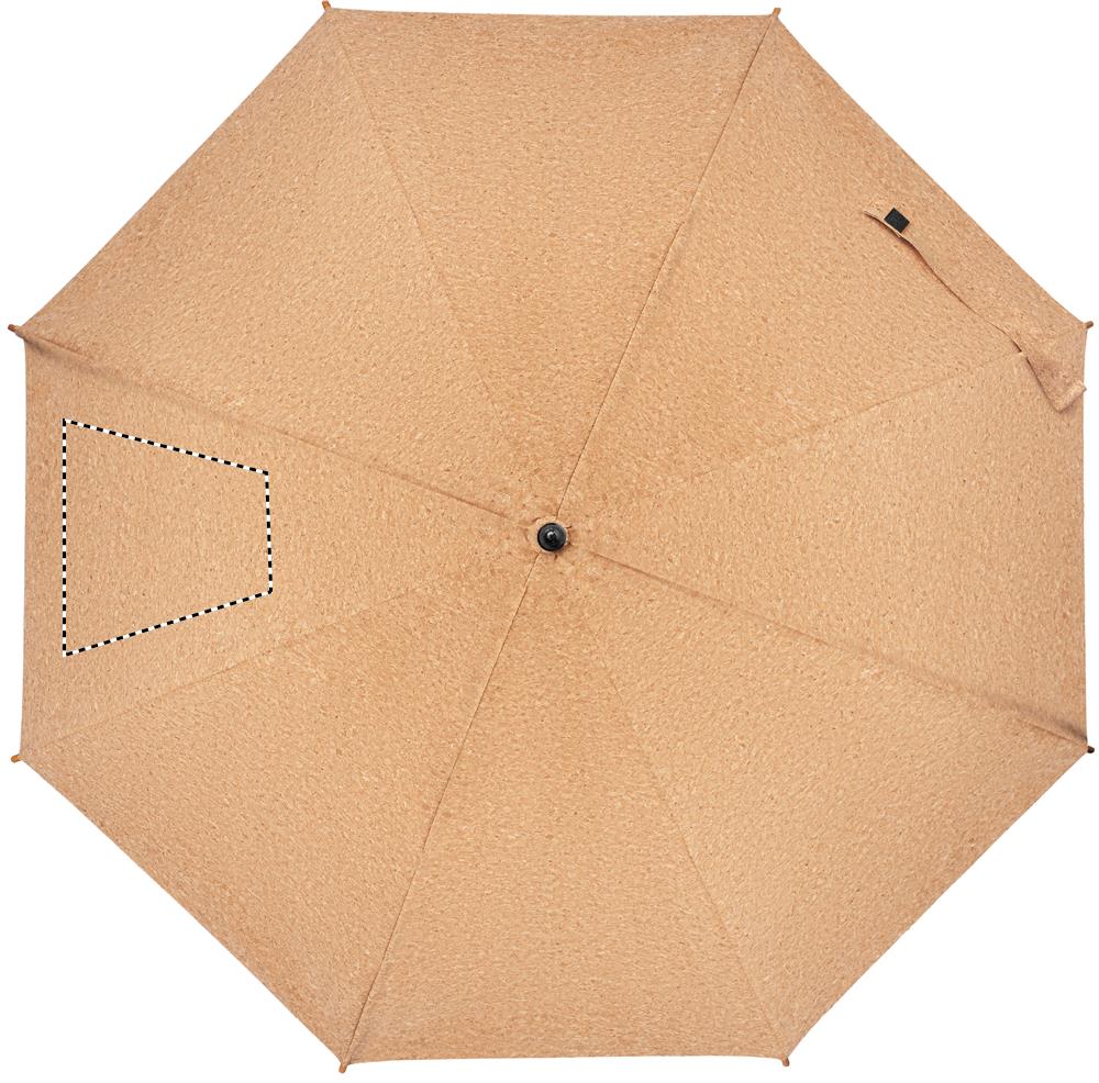 25'' Regenschirm. Segmente mit Korkbeschichtung. Stock aus Bambus, Stangen aus Fiberglas. Spitzen und Krone aus schwarzem Kunststoff. Gebogener Griff aus Schichtholz. Automatische Öffnung, manuelle Schließung. Kork ist ein 100% natürliches Material. Aufgrund seiner strukturellen Beschaffenheit und Oberflächenporosität kann das endgültige Druckergebnis pro Artikel Abweichungen aufweisen.