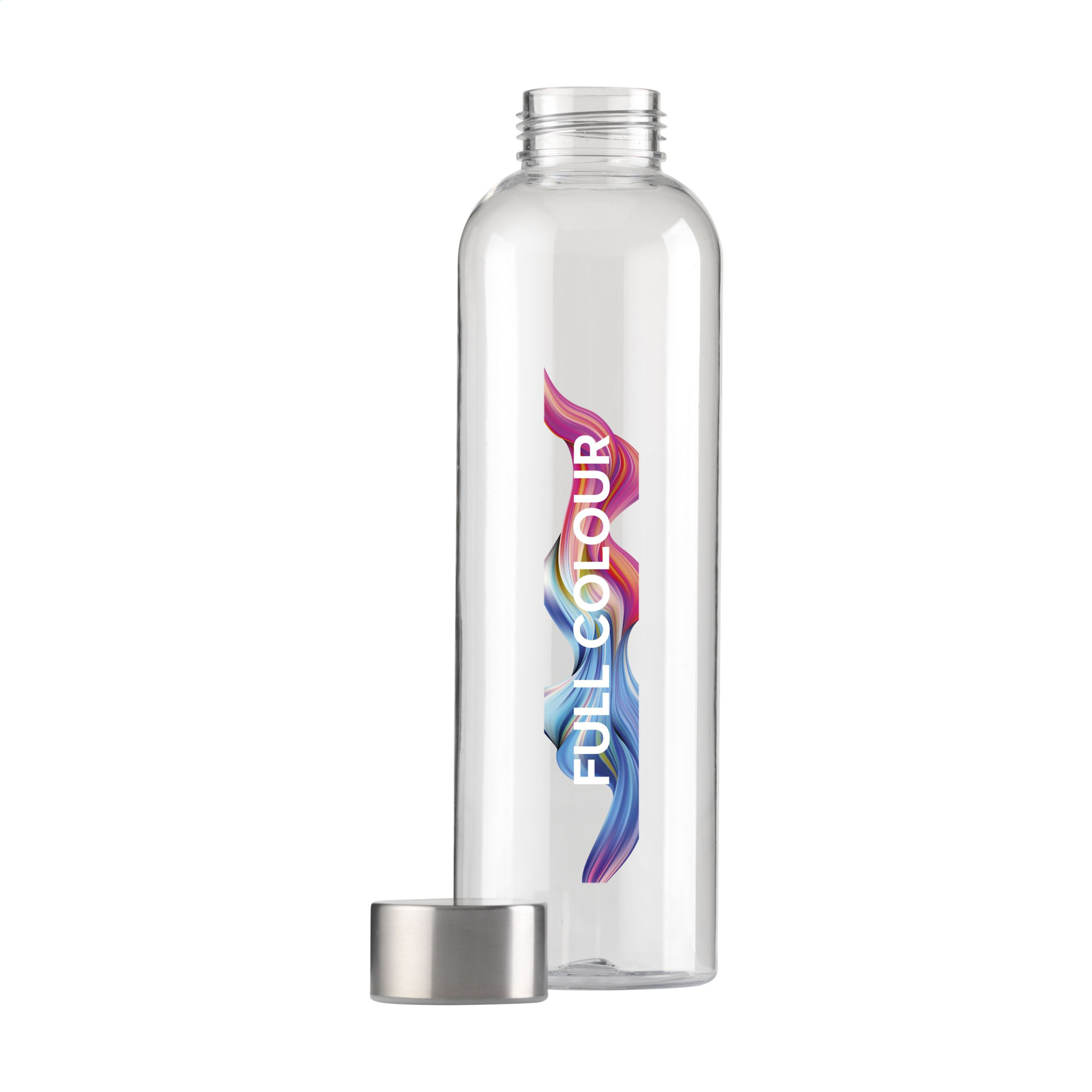 Transparente, BPA-freie Trinkflasche aus PCTG SK-Kunststoff. Mit Schraubverschluss aus Edelstahl. Das schlichte Design fällt sofort ins Auge und ist äußerst komfortabel. Auslaufsicher. Fassungsvermögen 650 ml.