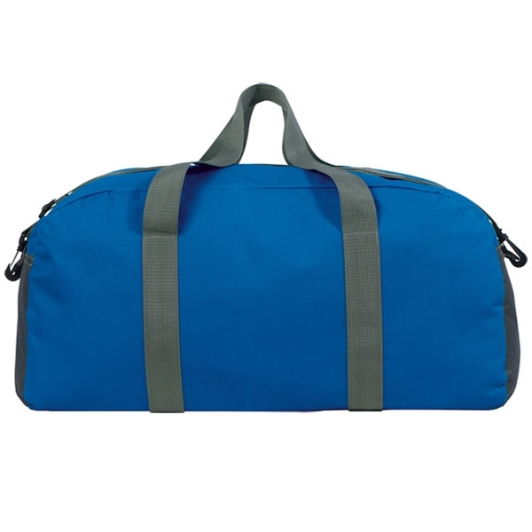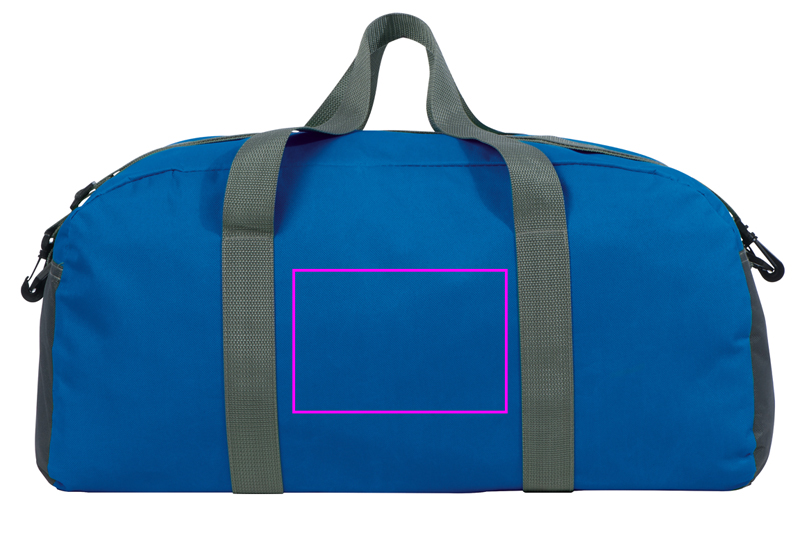Große Sporttasche aus 600D Polyester mit großem Innenfach, Tragegriffen und verstellbarem Schultergurt. Ihr Logo drucken wir einseitig auf.