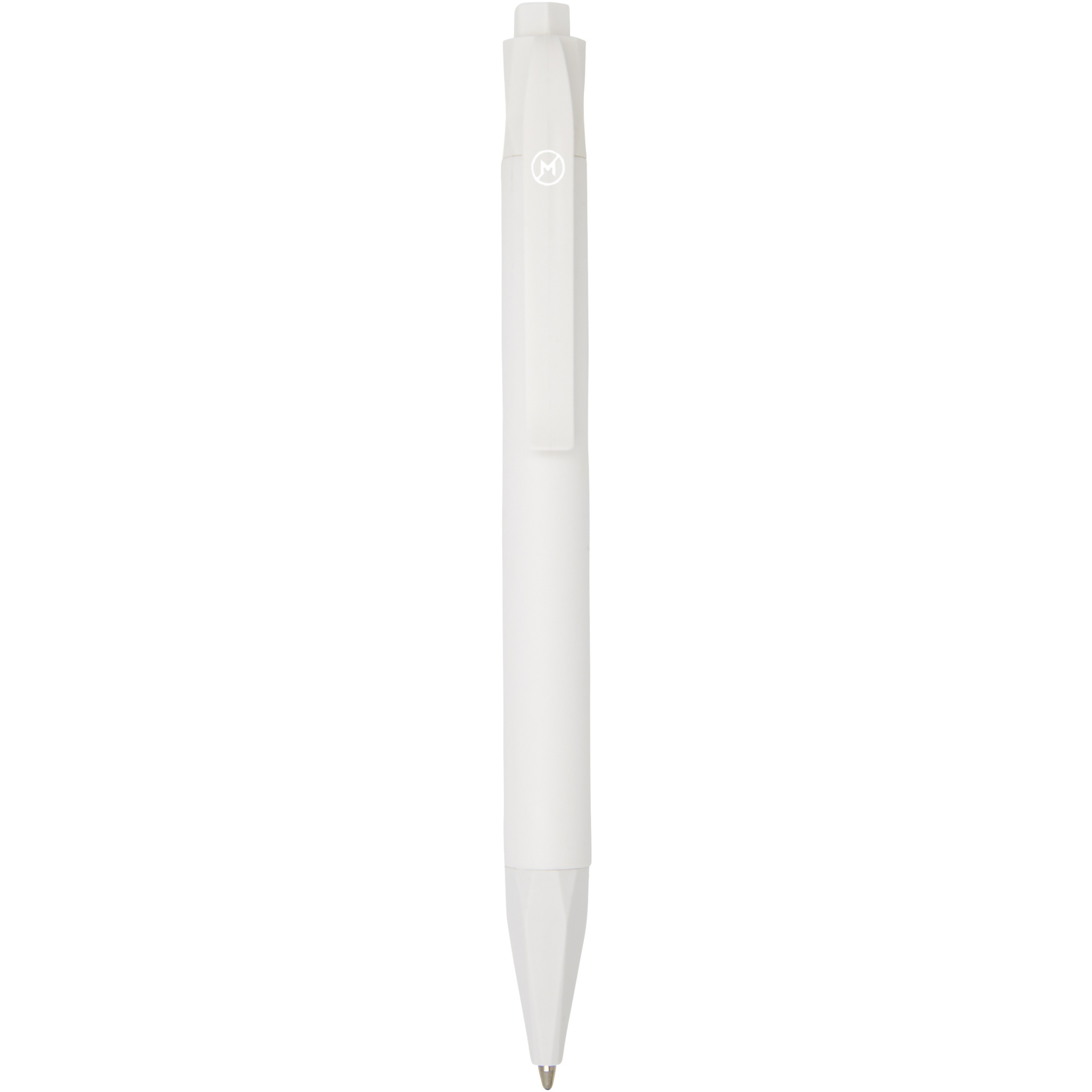 Langlebiger und nachfüllbarer Kugelschreiber mit Klick-Mechanismus aus 100 % PLA (Getreide Kunststoff), der die Menge des verwendeten Kunststoffs reduziert. Beinhaltet eine blaue Mine mit einer Schreiblänge von ca. 2000 Metern. Verpackt in einer Stifthülle aus Karton.