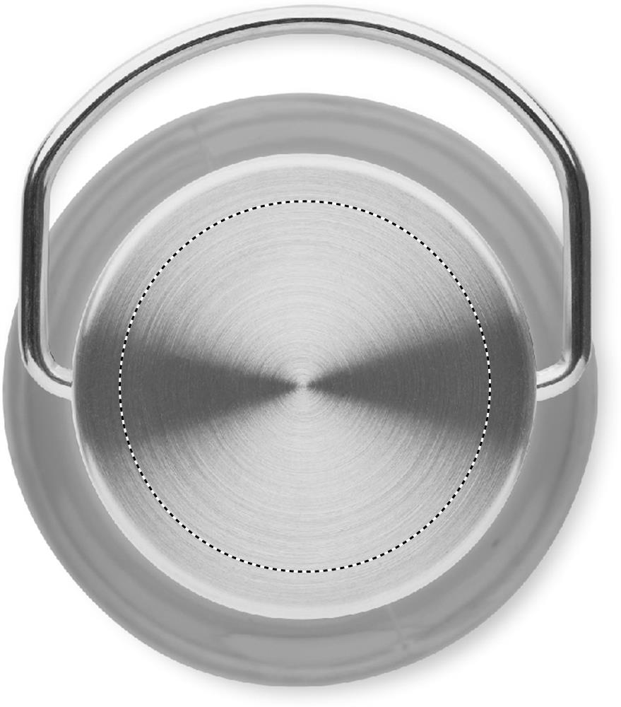 Trinkflasche aus BPA-freiem RPET. Verschluss aus Edelstahl mit Henkel. Auslaufsicher. Füllmenge: 600 ml.