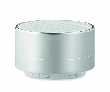 Aluminium 4.2 wireless speaker with rechargeable Li-on 450mAh battery and light at the bottom of the speaker. Output data: 3W, 4 Ohm and 5V. Micro USB cable included. Playing time aprox. 3h.