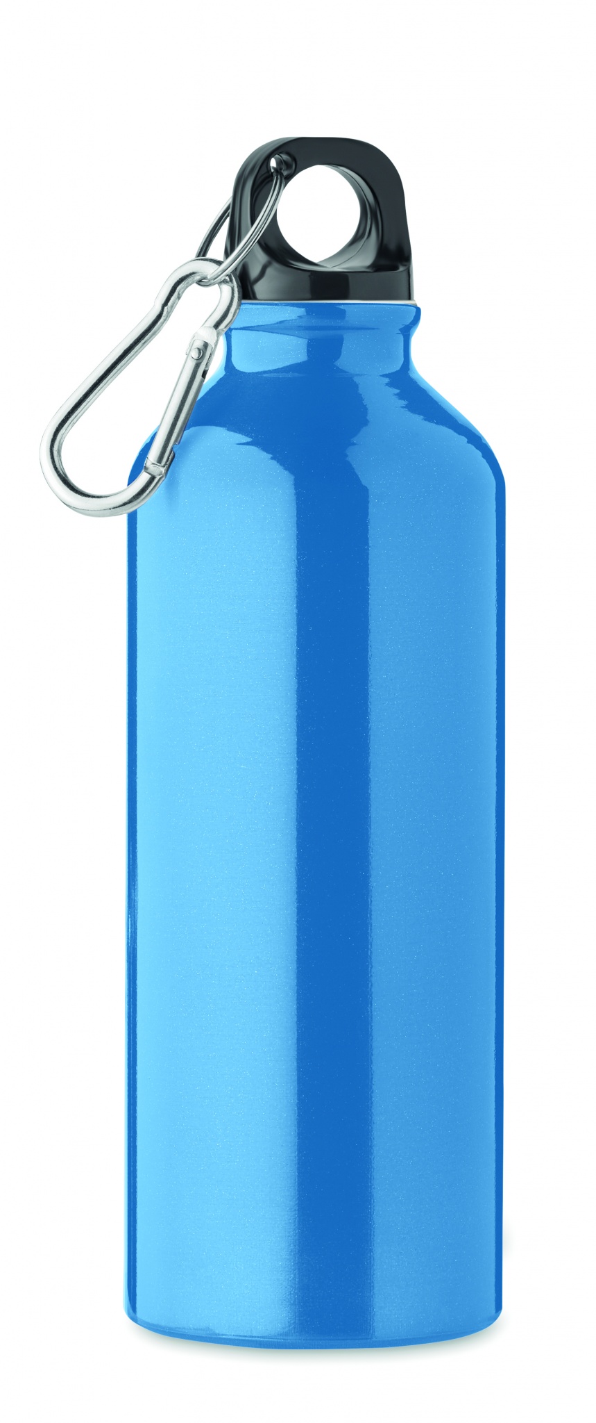 Single wall recycled aluminium bottle with carabiner. Capacity: 500 ml. Leak free. The carabiner is not for climbing (non professional use). Sublimation print available on white item only.
