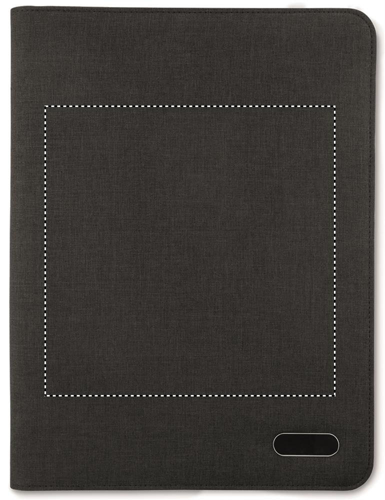 A4 conference folder in two-toned polyester. Zipped. 20 lined pages notepad. 3 compartments. Pen holder.
