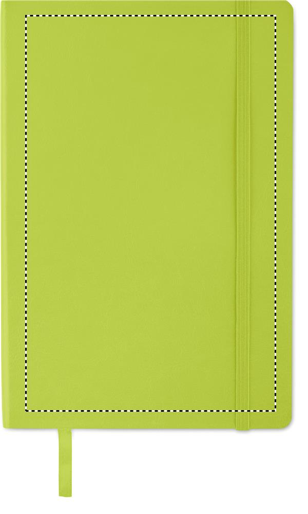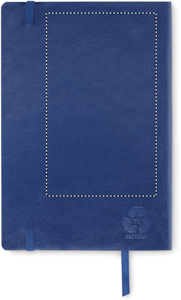 A5 notebook with soft recycled PU (81% recycled polyester and 19% PU) cover. Casebound. 160 lined pages (80 sheets recycle papers). Matching elastic closure strap and ribbon bookmark. Expandable inner pocket in the back. FSC®-certified | FSC MIX CREDIT, P7.1, FSC-C213206