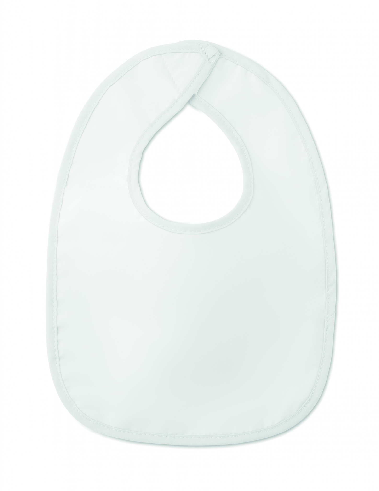 Baby bib in Polycotton and backing in PEVA. Hook and loop closure.