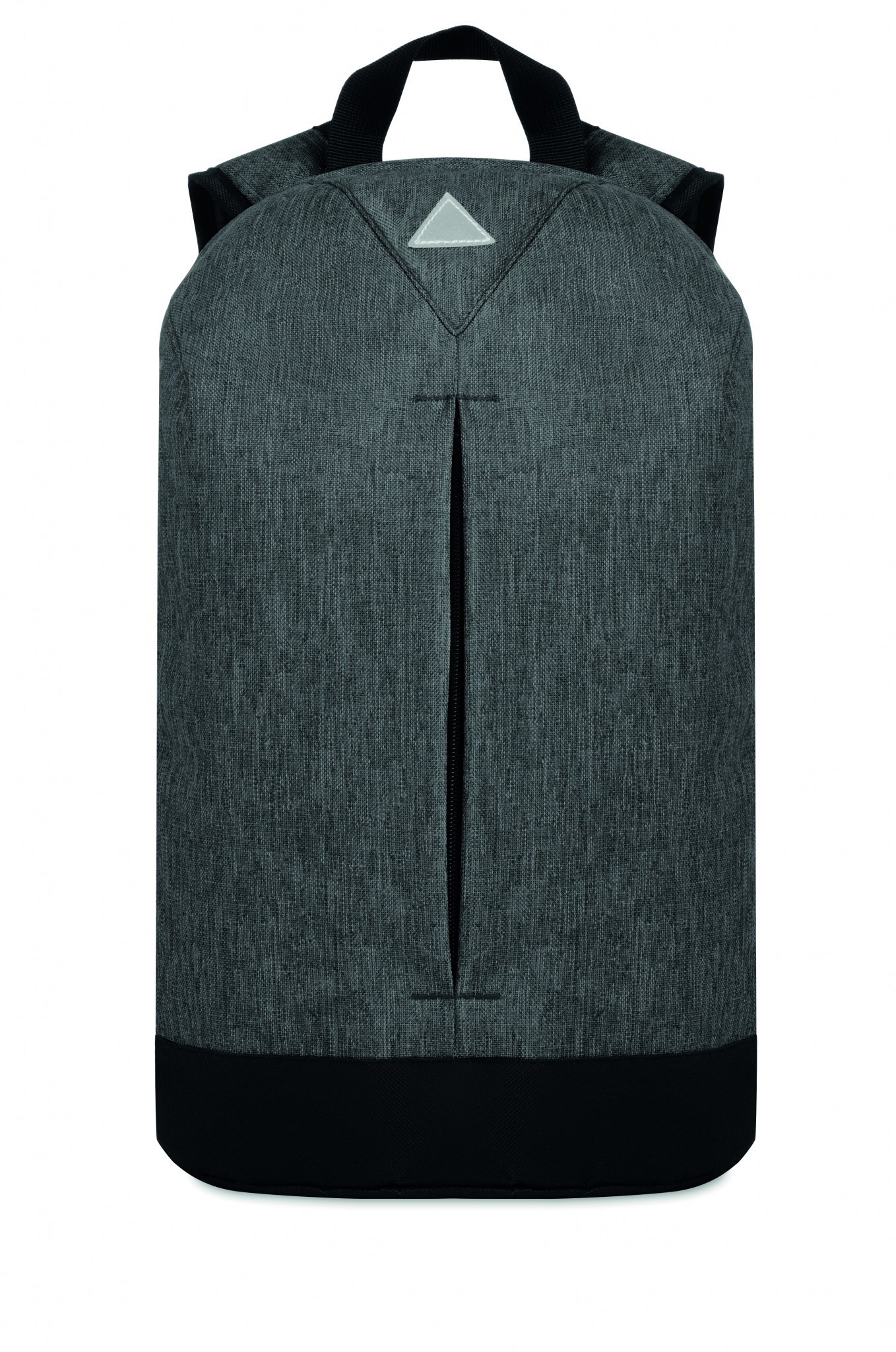 13 inch laptop backpack in 600D 2 tone polyester with outside pocket with zipper. Zipper main compartment on backside for better protection.