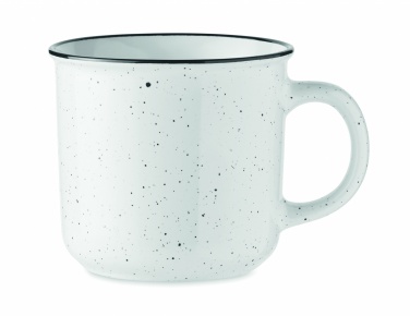 Large ceramic vintage style mug. Due to the spotted pattern, spots will be visible in the printed logo. Capacity: 400 ml.