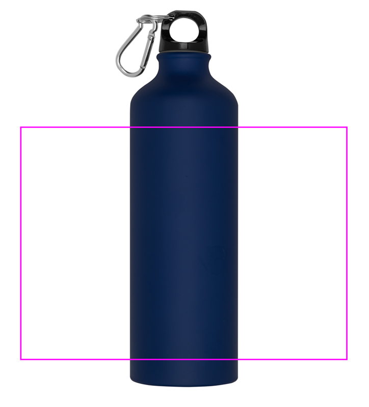 Leak-proof drinking bottle made of aluminum with carabiner and a capacity of 800 ml. Your logo will be lasered on the bottle.