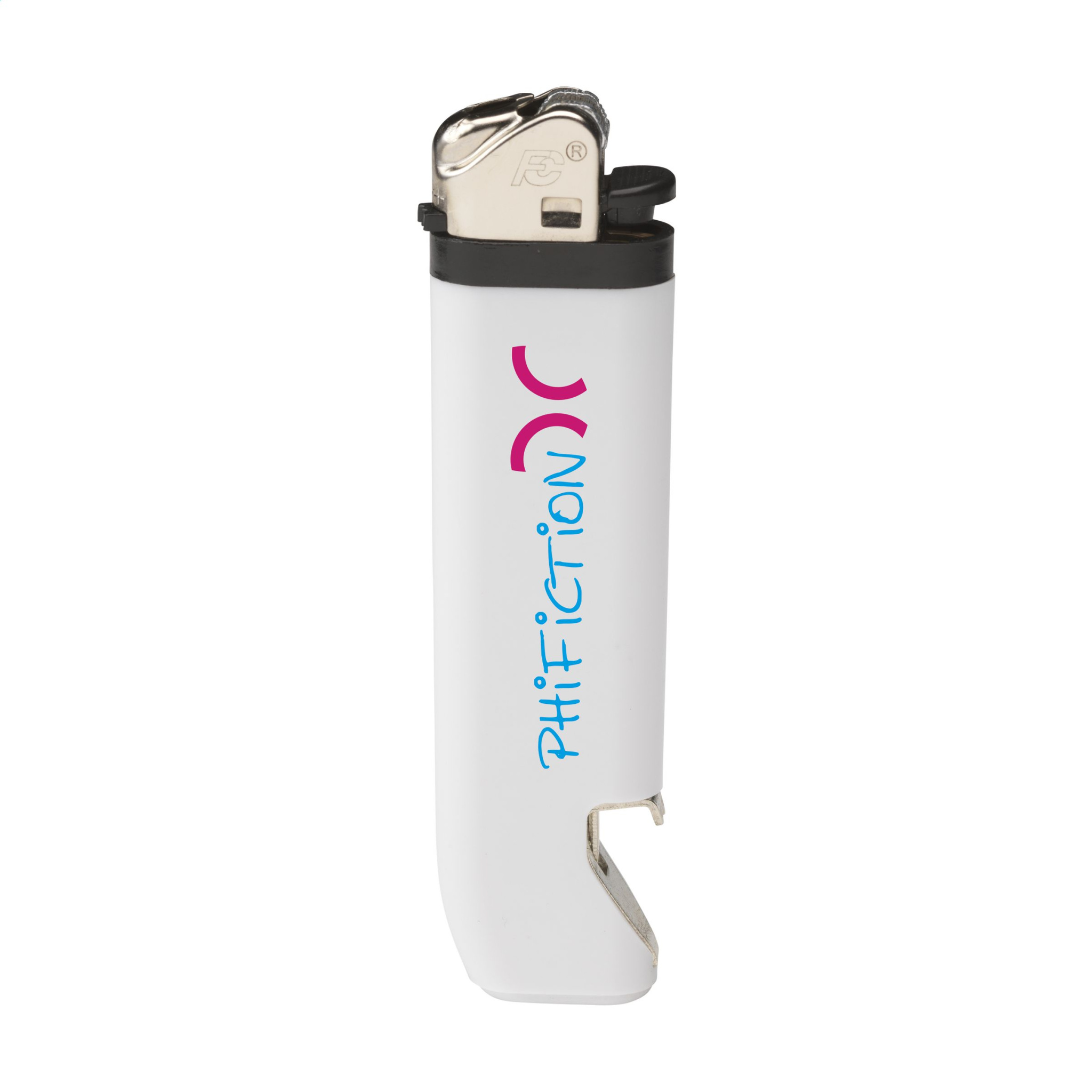 Quality lighter of the brand Flameclub® with a handy bottle opener and adjustable flame. Equipped with child lock. NEN-certified: EN13869. TÜV-certified and ISO-certified: ISO9994. Lighter are only supplied with print.