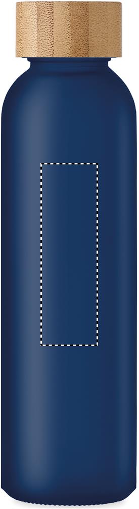 Glass bottle with frosted finish and bamboo lid. Leak-free. Capacity: 500 ml. Bamboo is a natural product, there may be slight variations in colour and size per item, which can affect the final decoration outcome.