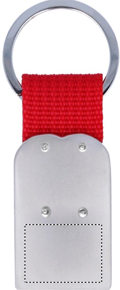 Metal key ring in matt pearl finish in hollow heart shape decoration with polyester webbing holding the metal ring. Individual gift box.