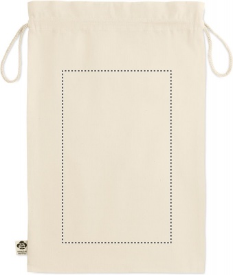 Large gift draw cord bag in organic cotton. Size approx. 30 x 47 cm. 105 gr/m².