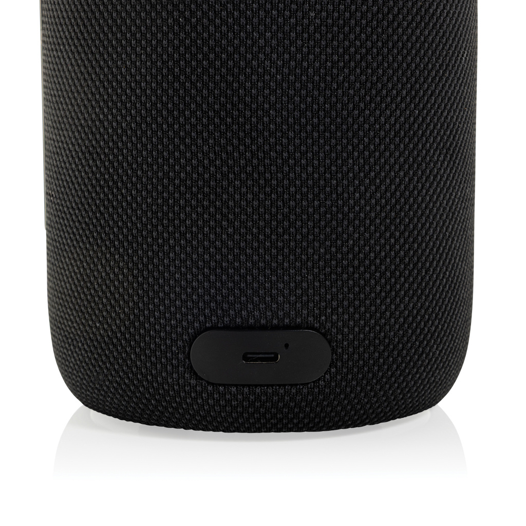 The Lux 10W RCS recycled speaker lamp combines modern design with high-quality audio and versatile lighting, making it a stylish addition to any space. Its sleek black body, made from RCS recycled ABS and PET, houses a powerful 10W speaker with BT 5.3 connectivity and a 2000 mAh rechargeable Li-ion battery. With an input of 5V 0.1–2A, the battery charges in just 4 hours and provides up to 7 hours of playtime at 50% volume. The lamp features 8 LEDs with cold, normal, and warm light modes, producing 32–38 lumens and operating for up to 3 hours. Additional features include a built-in microphone for hands-free calls and easy pairing. The included 30 cm RCS recycled TPE USB-C to USB-C cable ensures convenient charging. Made out of RCS certified recycled materials. RCS (Recycled Claim Standard) is a standard to verify the recycled content of a product throughout the whole supply chain. Total recycled content: 51 % based on total item weight. Item and accessories are PVC-free. FSC packaging.