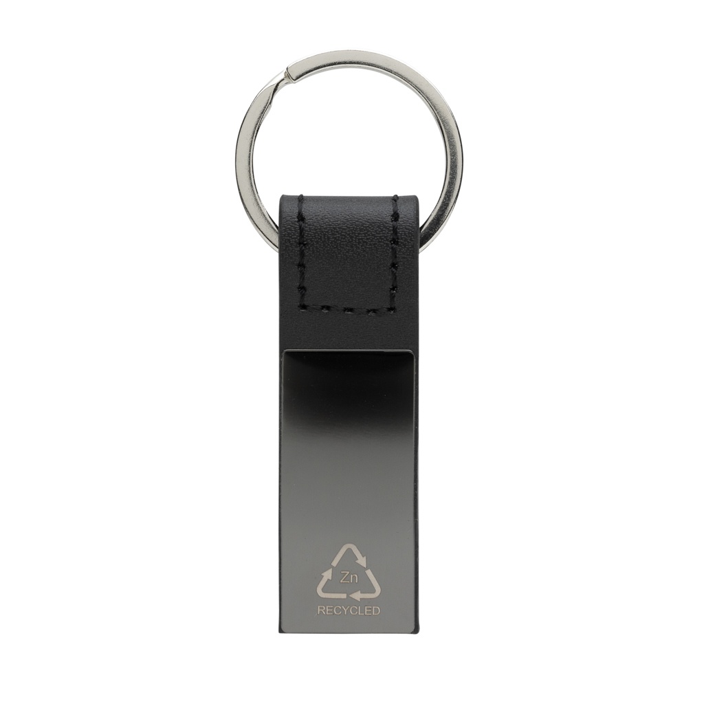 Luxury keychain made with RCS recycled zinc alloy and PU. Total recycled content: 67% based on total item weight. RCS certification ensures a completely certified supply chain of the recycled materials. Packed in paper bag.