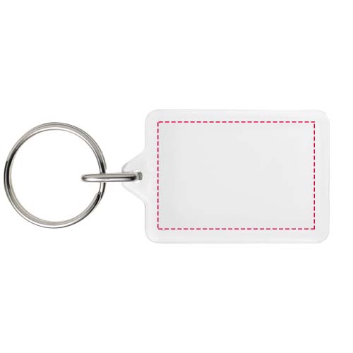 Clear rectangular Y1 keychain with metal split keyring. The metal looped ring offers a flat profile which is ideal for mailings. Print insert dimensions: 3,5 cm x 2,4 cm.