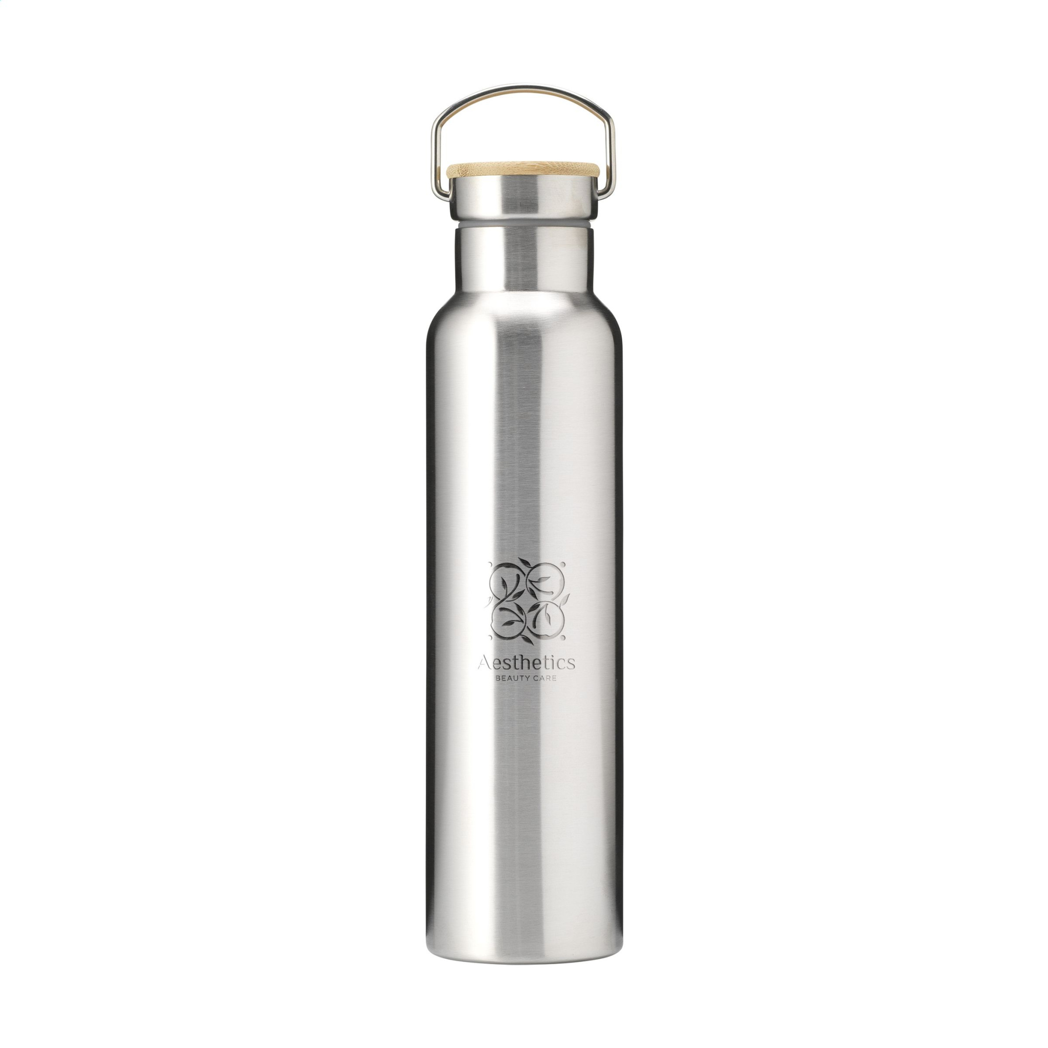 WoW! Double-walled, leak proof water bottle/thermo bottle made from recycled stainless steel. Vacuum-insulated. The handy screw cap is a made from a combination of stainless steel and bamboo. Suitable for maintaining the temperature of cold or hot drinks. This design is based on the vintage glass milk bottle. RCS certified. Total recycled material: 82%. Capacity 750 ml. Stainless steel can be recycled many times whilst retaining the quality of the material. By using recycled stainless steel, fewer new raw materials are needed. This means less energy consumption and less use of water. A responsible choice. Each item is supplied in an individual brown cardboard box.