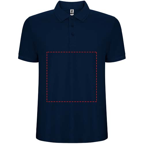 Short-sleeve polo shirt. Collar and sleeves edging in 1x1 ribbed fabric with detail. 3-button placket. Reinforced covered seams in collar. Side slits and optional pocket. Removable label. Anti-pilling treatment.