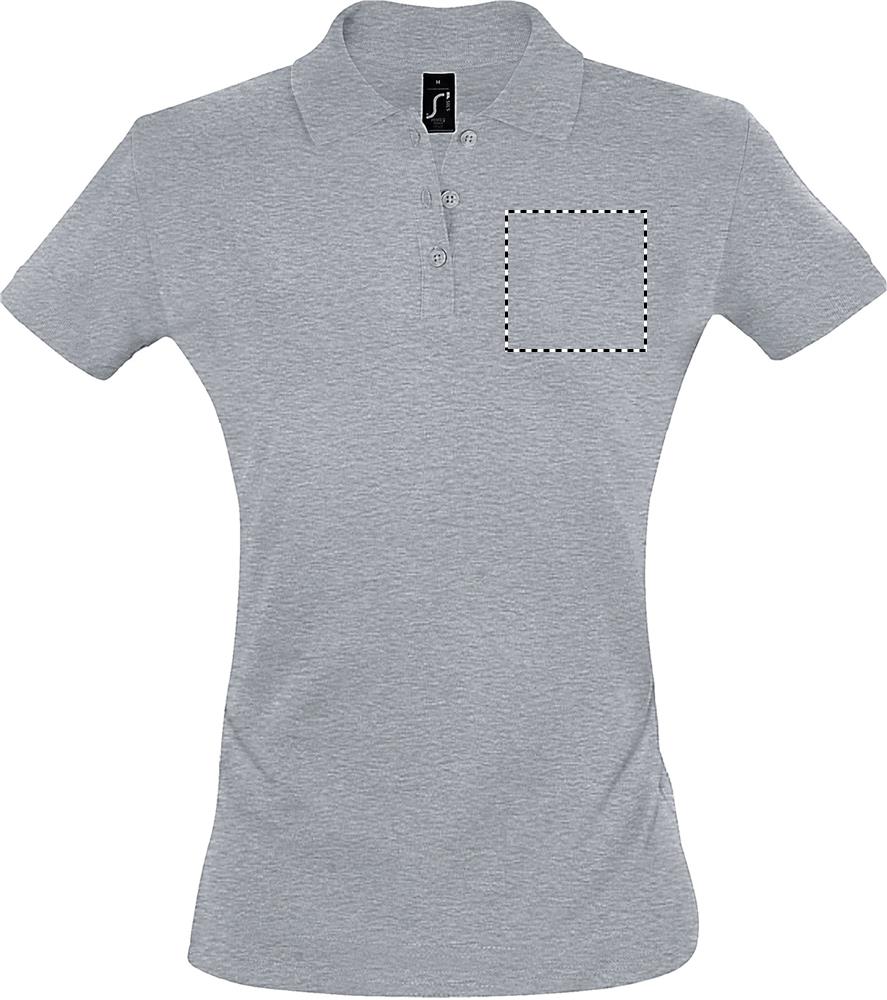 SOL'S PERFECT Women's Polo Pique with ribbed 1x1 collar and cuffs, Reinforced neck seam, 2 pearl buttons tone-on-tone, modern fitted cut with side seam, spare button on the inside. Fabric details: 180g /m² 100% combed ring-studded cotton. OEKO-TEX®. Only sold with print