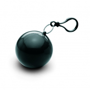Transparent PE poncho wrapped in an AS ball shell with carabiner hook to hang on a belt or a bag.