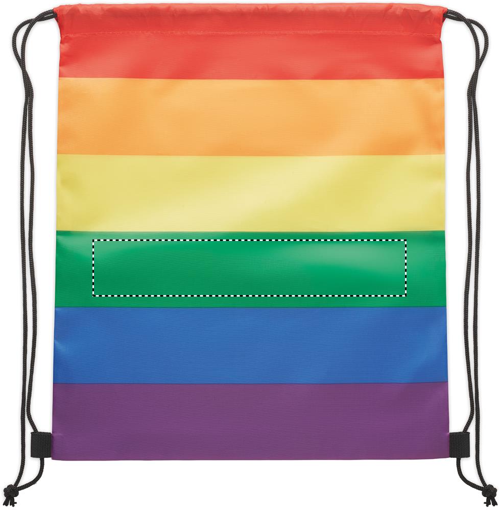 Rainbow Drawstring bag in 210D RPET polyester with PP strings.