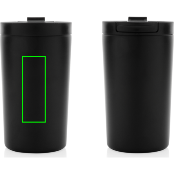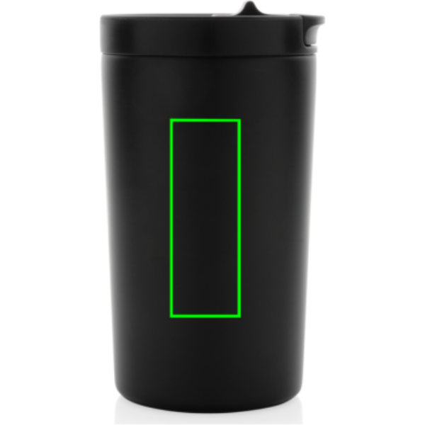 This double wall vacuum leakproof lock mug is the perfect size for your beverage. It's leakproof sealed flip lid is designed for easy open/close and on-the-go use. Vacuum insulation keeps beverages hot for up to 5 hours and cold for up to 15 hours. Made with RCS (Recycled Claim Standard) certified recycled materials. RCS certification ensures a completely certified supply chain of the recycled materials. Total recycled content: 80% based on total item weight. Capacity 300ml. BPA free and hand wash only.