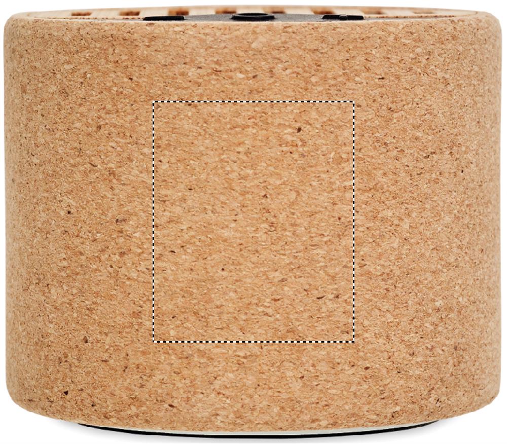 5.3 wireless speaker in ABS with cork casing with bamboo on top and LED light indication. 1 Rechargeable Lithium 300 mAh battery included. Output data: 3W, 4 Ohm and 5V. Playing time approx.. 4h. Cork is 100% natural material. Due to its structural nature and surface porosity the final print result per item may have deviations.