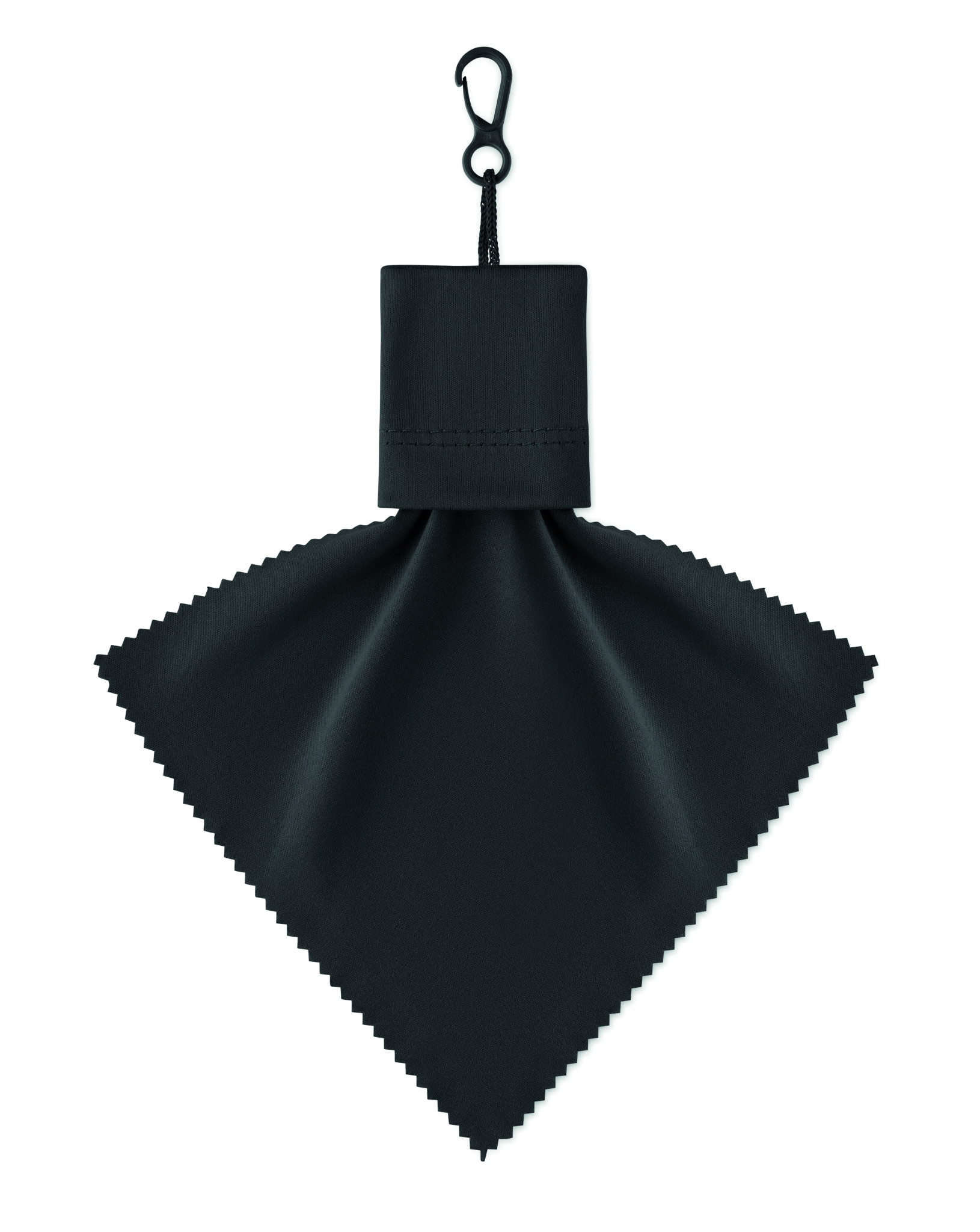 RPET cleaning cloth with self material pouch with PP plastic hanging hook.