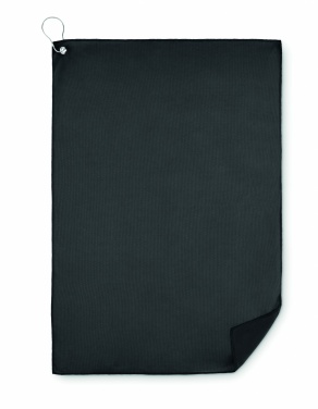 RPET polyester golf towel with iron hook hanger. Towel size: 40x60cm.