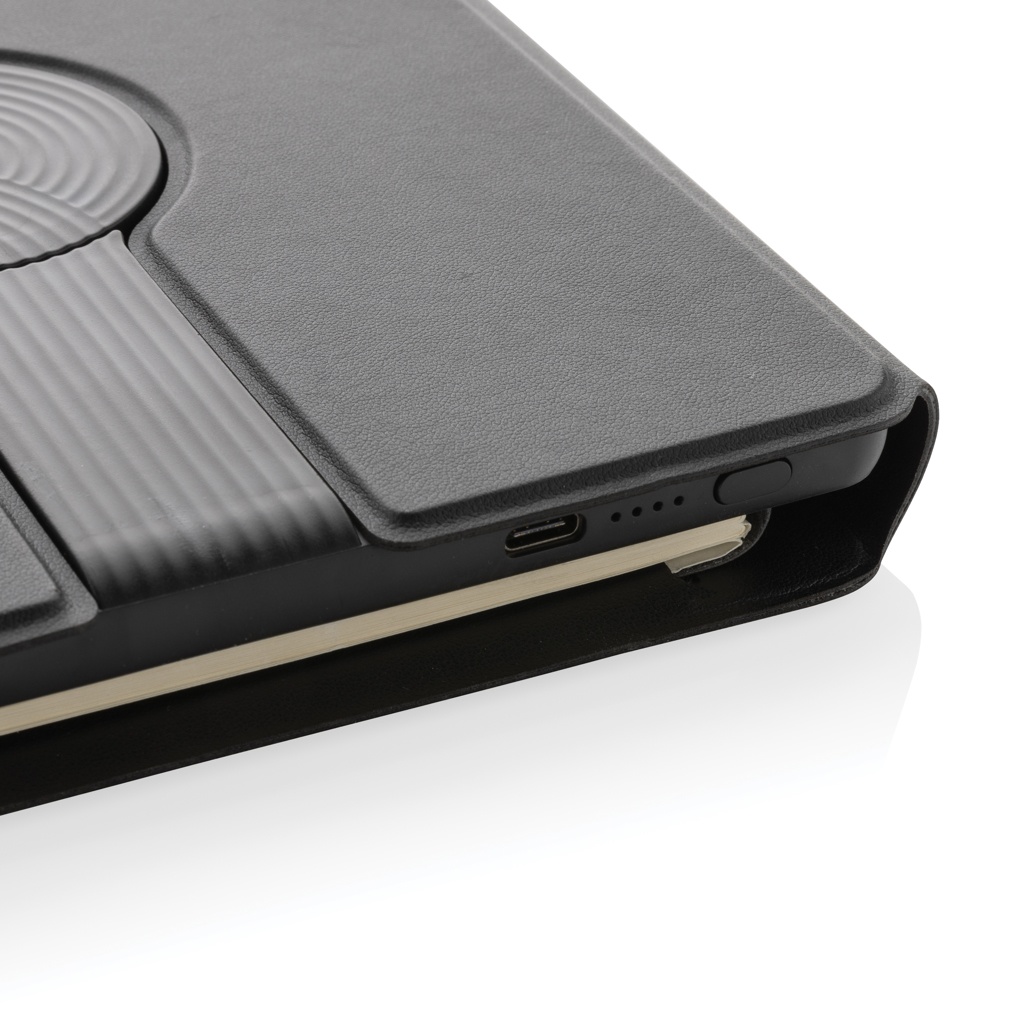 Logo trade promotional product photo of: Swiss Peak RCS rePU notebook with 2-in-1 wireless charger