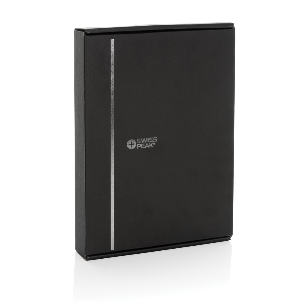 Swiss Peak RCS rePU notebook with 2-in-1 wireless charger, black