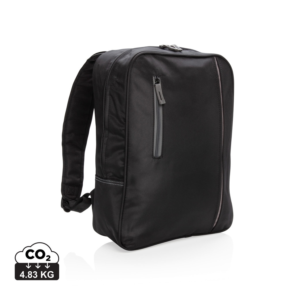 Padded microfibre and grey suedine detail, 2 compartments with padded folder suitable for 15,6” laptop, earphone exit, adjustable shoulder straps with phone pouch. Registered design®