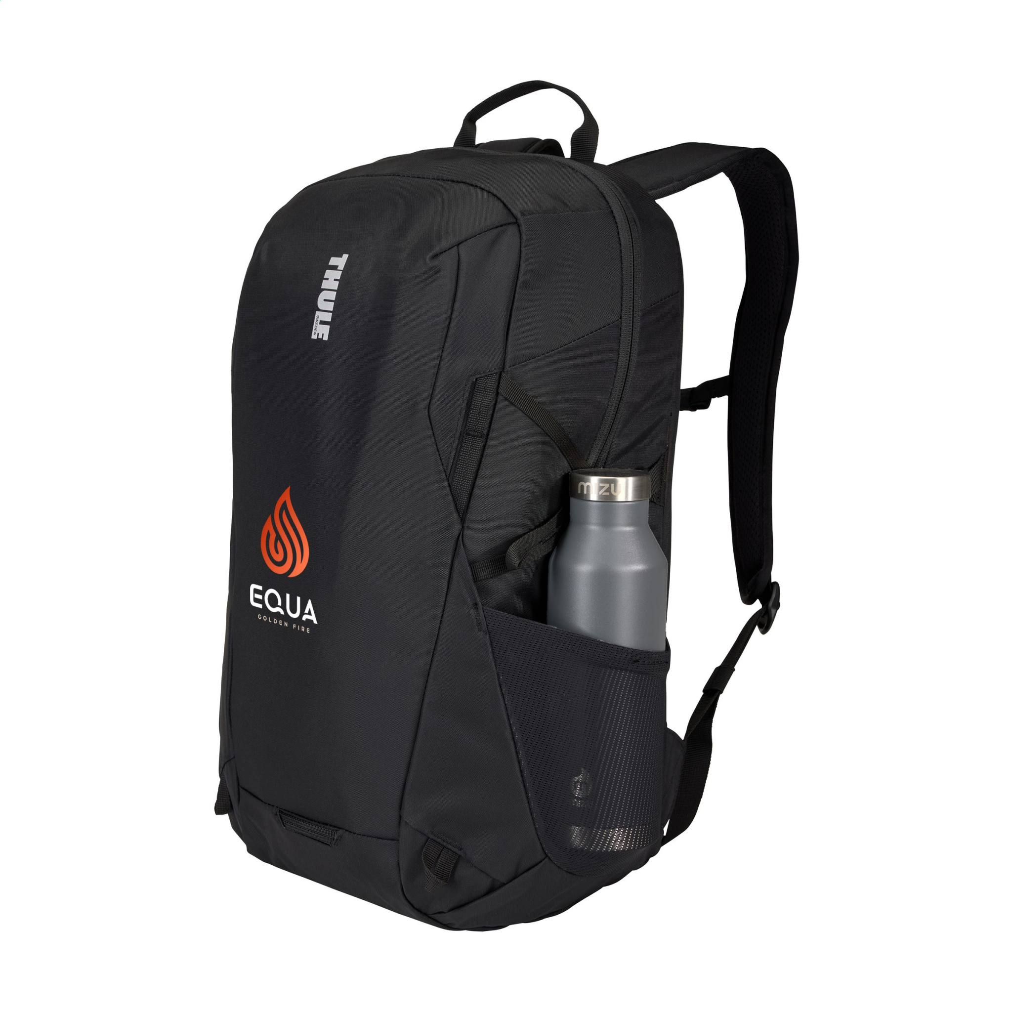 Slim and stylish backpack made from sturdy bluesign® approved 400D nylon from the Thule brand. With 2 compartments, it features plenty of storage space and pockets to keep all your stuff organised. With protective pockets for a laptop up to 15.6 inches and a tablet up to 10.5 inches. Inner pockets for storing small accessories and pens. Additional front zip pocket and an elastic mesh side pocket for carrying a drinking bottle. With various extras and a luggage strap for transporting on a trolley. The adjustable shoulder straps and back panel with airflow channel, feature foam and breathable mesh and guarantee excellent carrying comfort. Equipped with adjustable chest strap, YKK zips and fully lined. Designed for work and play. Capacity approx. 21 litres.