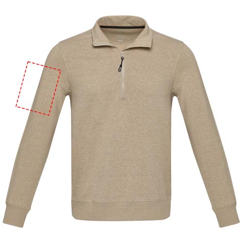 The Tin unisex Aware™ quarter zip sweater is made from 50% organic cotton and 50% recycled cotton. The functional quarter-zip design adds versatility and convenience, allowing you to easily layer the sweater and adjust comfort. The sweater incorporates Cyclo® recycled fibres where they use pre-sorted waste that determines the colour of the yarn. These fibres do not only reduce the demand for virgin resources but also exhibit a commitment to a circular life, embodying the essence of reducing waste and promoting a closed-loop system. Each sweater also comes with an Aware™ tracer. This innovative feature allows users to trace the origins and journey of their item through a QR code, enhancing transparency in the supply chain and fostering a stronger connection between the product and its production process.
