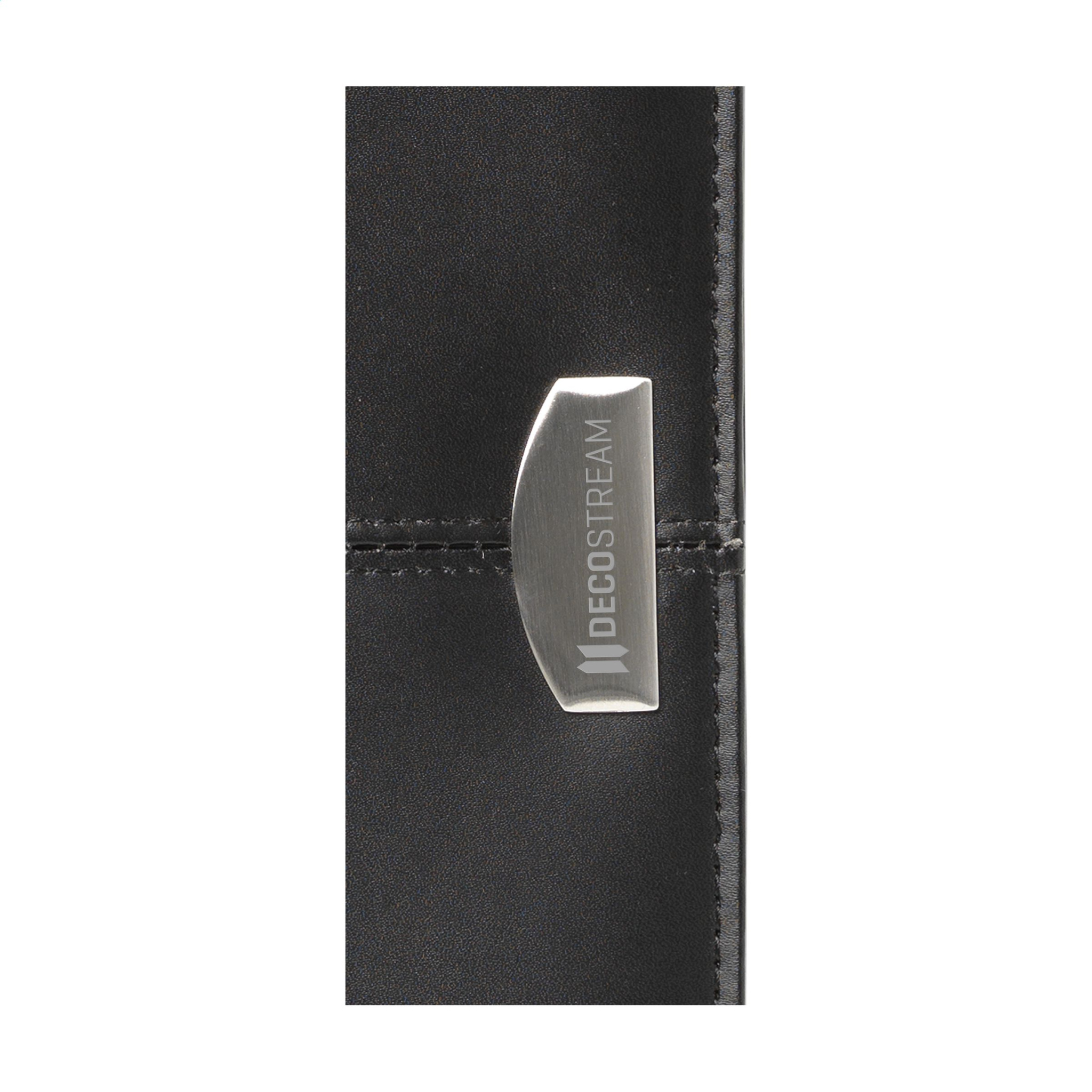 Conference/document folder made from fine, bonded leather in A4 format. With several pockets, business card slots and zip closure. Incl. writing pad and ballpoint pen. Each item is individually boxed.