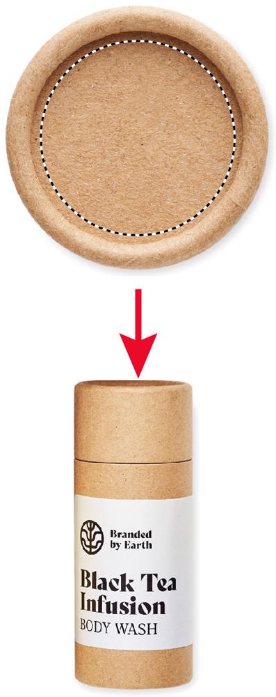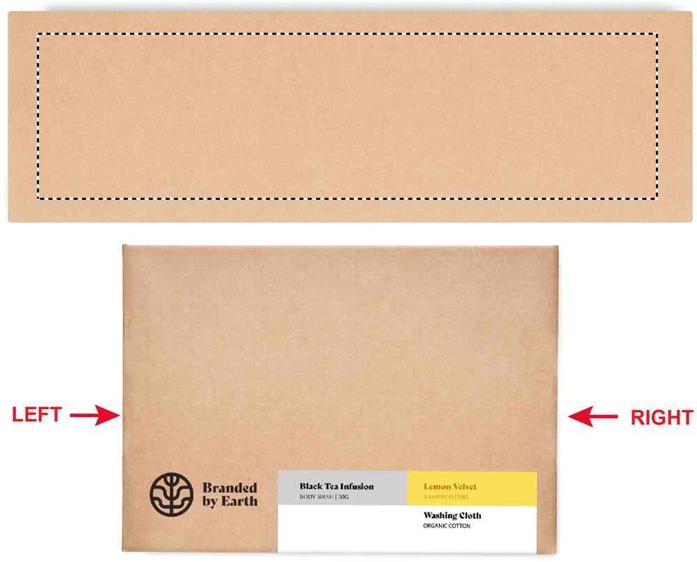 Unisex On the Go gift set by Branded By Earth. Includes 24 vegan 4gr of body wash, shampoo and a washing cloth in organic cotton. All pieces packed in tube. Presented in recycled paper box. Made in EU.
