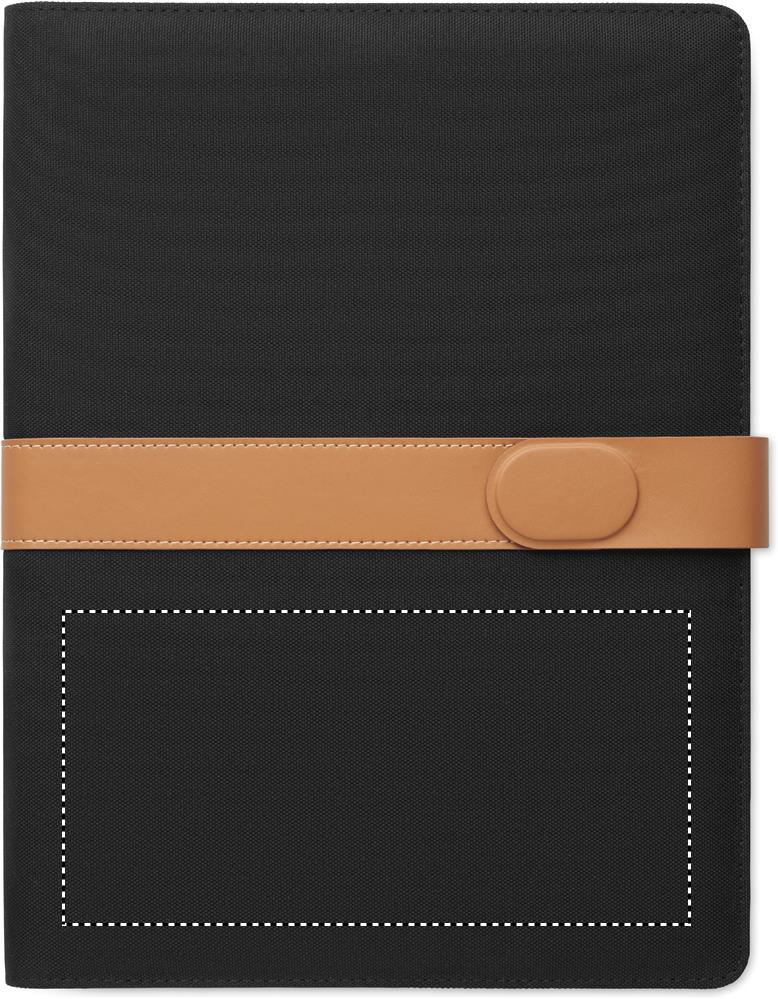 A4 portfell kunstnahast detailidega RPET. Vahetatav A4 märkmik.30 taaskasutatud paberist vooderdatud lehte. Pliiatsihoidja. 4 kaardihoidjat, 3 väikest taskut ja üks suur sahtel. Magnetrihmaga sulgur.