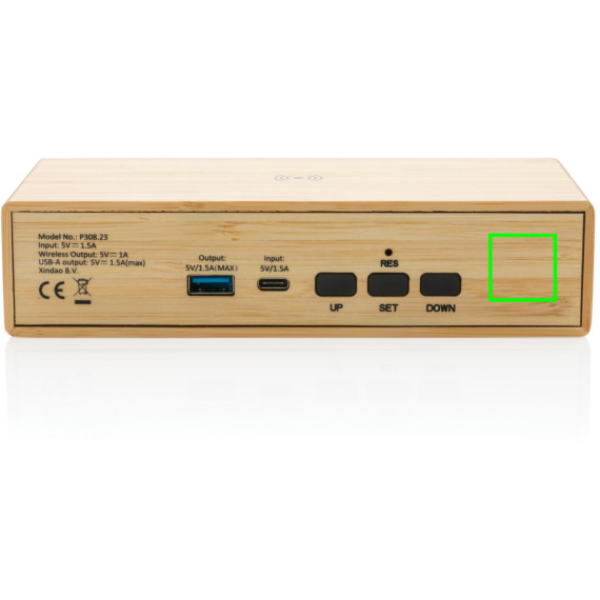 Logotrade ärikingituse foto: Bambusest äratuskell 5W juhtmevaba laadijaga